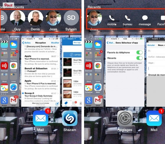 Lorsque vous appuyez 2 fois sur le bouton au bas de l’écran, vous verrez apparaitre une liste des derniers contacts avec qui vous avez interagi. Vous n’aurez qu’à cliquer sur leur photo pour envoyer un message, les appeler, etc. C’est également à partir de cette fenêtre que vous pouvez fermer vos logiciels actifs.