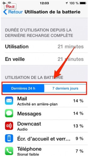 Identifiez les applications les plus énergivores sur votre iPhone ou iPad. Voici un autre emprunt à Android. Il est possible d’afficher la liste des applications qui utilisent le plus la batterie de votre iPhone et iPad. Vous aurez accès à deux listes. Vous trouverez cette option sous RÉGLAGES > GÉNÉRAL – Utilisation de la batterie
