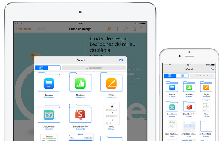 Vous êtes maintenant libre de travailler avec le fichier de votre choix, sur l’appareil de votre choix. Avec iCloud Drive, PDF, présentations, feuilles de calcul, images et toute la ribambelle logent maintenant dans iCloud. Et iPhone, iPad, iPod touch, Mac et PC y sont tous invités.