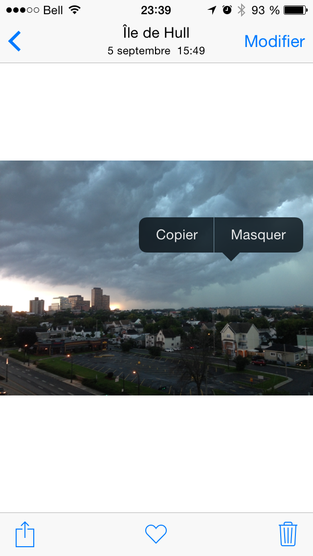 Il y a parfois des photos privées, coquines, personnelles que l’on garde dans notre téléphone. Or, avec le partage des albums photos sur le nuage, avec votre AppleTV par exemple, il arrive que vos amis soient témoins de choses qui ne les regardent pas! Tenez votre doigt enfoncé sur n’importe quelle photo dans votre album, et choisissez de la cacher. Vous pourrez la retrouver dans un album intitulé « photos masquées »