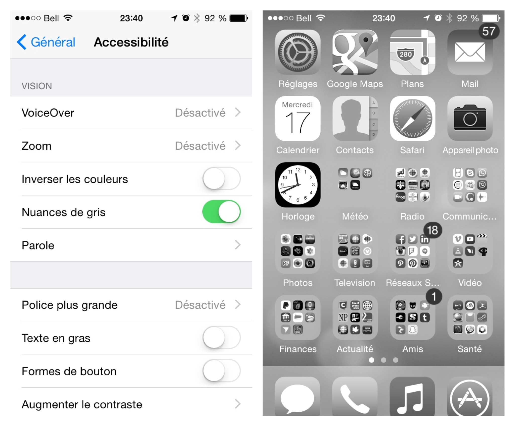 Une nouvelle fonction sous le menu GÉNÉRAL > ACCESSIBILITÉ vous permet de choisir de voir la vie en gris ou encore en couleurs inversées!